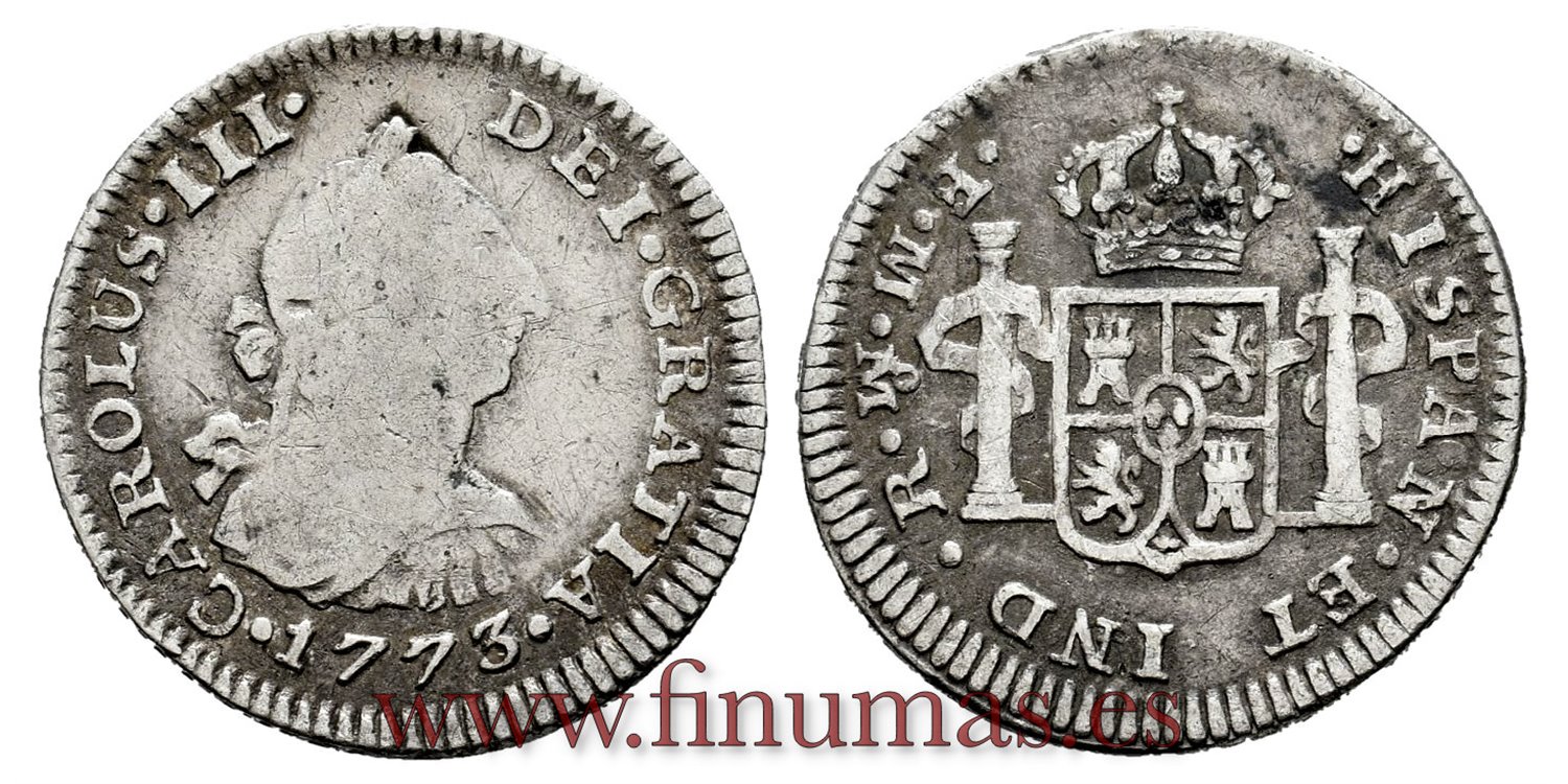 Cy10370.-CARLOS III - 1/2 Real 1773 Mexico F.M.-BC+.