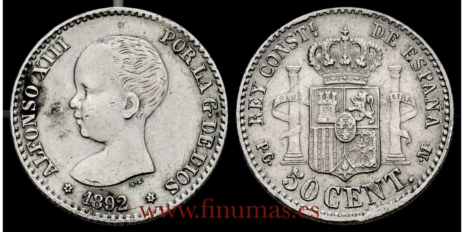 Alfonso XIII 50 céntimos. 1892 Variante estrellas *6-*2. Madrid. PGM. (Cal-41). Ag. 2,51 g. EBC- Escasa