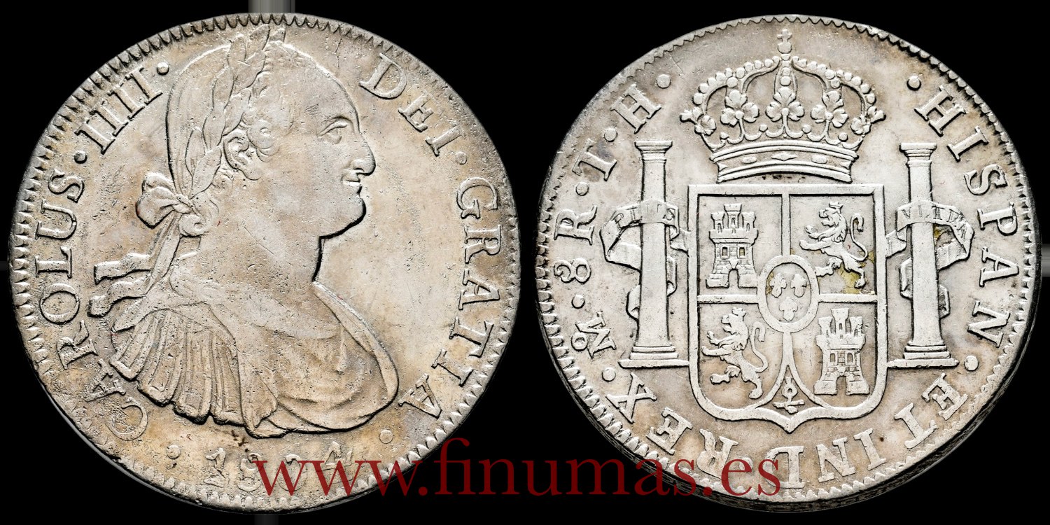Carlos IV 8 reales 1804 México. TH. Ag. 26´91 gm. Algo de Tono y minimos restos de B.O. EBC- (Cal-980).