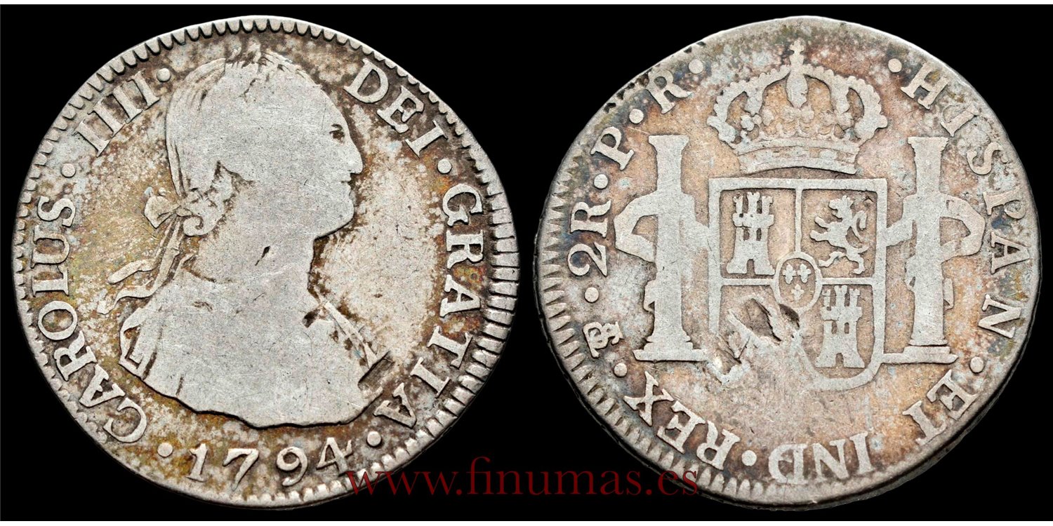 Cy12753B.- CARLOS IV 2 REALES 1794 POTOSI P.R. - RC. PLATA