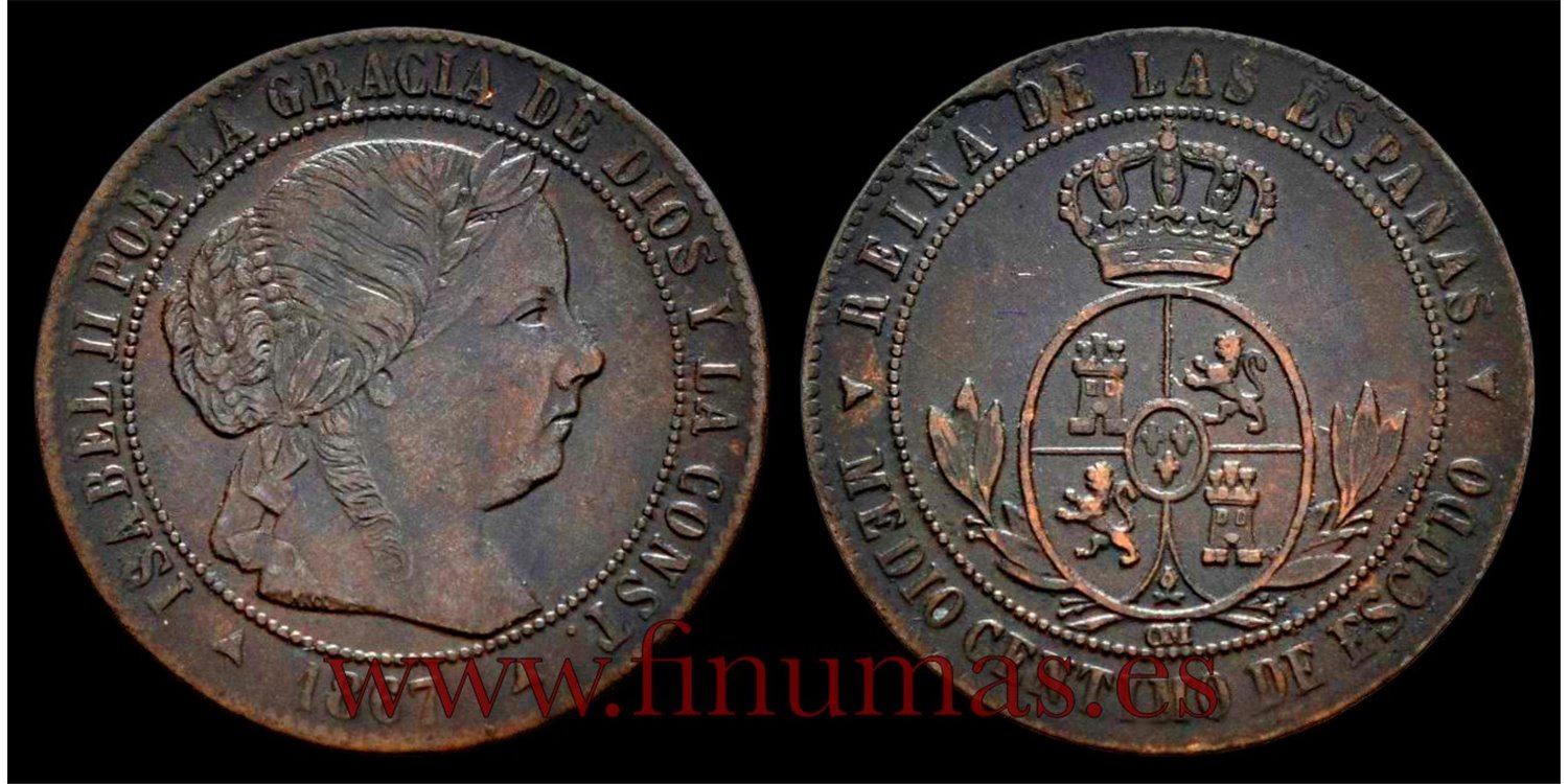 Cy15652.-ISABEL II - 1/2 Ctm.Escudo. 1867 Segovia OM - MBC
