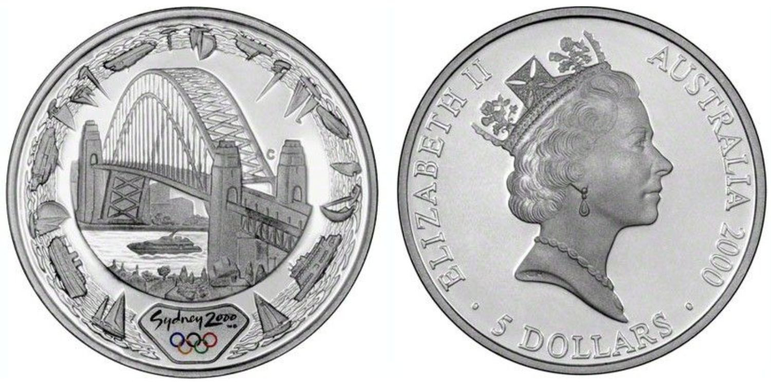 Australia. Elizabeth II. 5 dollars. 2000. (Km#515). Ag. 31,64 g. Sidney Olympic Games 2000. Syndey Harbour Bridge