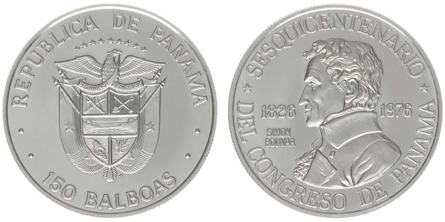 PANAMA - Km#060 - 150 BALBOAS 1976 150th Anniversary of the Panamaian Congres. Platino (Pt) 9'30gm Blister original Franklin Mint