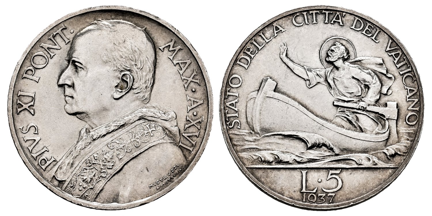 VATICANO - K-007 - 5 Liras 1937 Pius XI - EBC