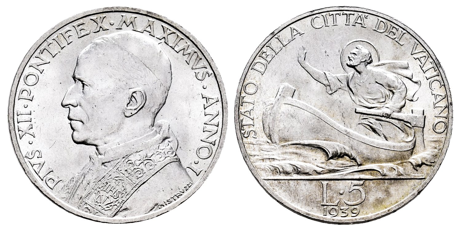 VATICANO - K-007 - 5 Liras 1939 Pius XI- SC