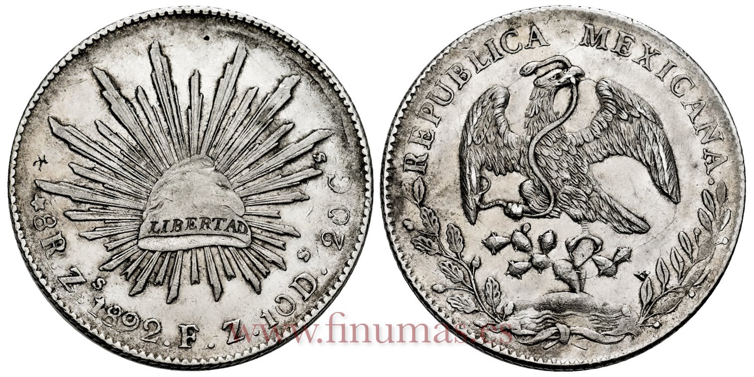 MEXICO - k-377-13 - 8 REALES 1892 Zacatecas F.Z.-EBC-