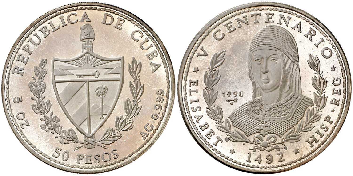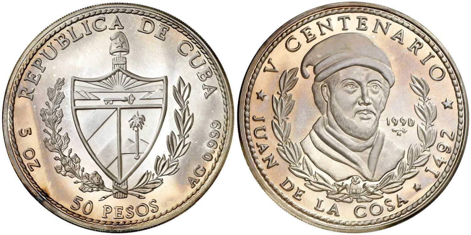 50 Pesos (5 Onzas) Pesos Juan de la Cosa 1990 Km#297