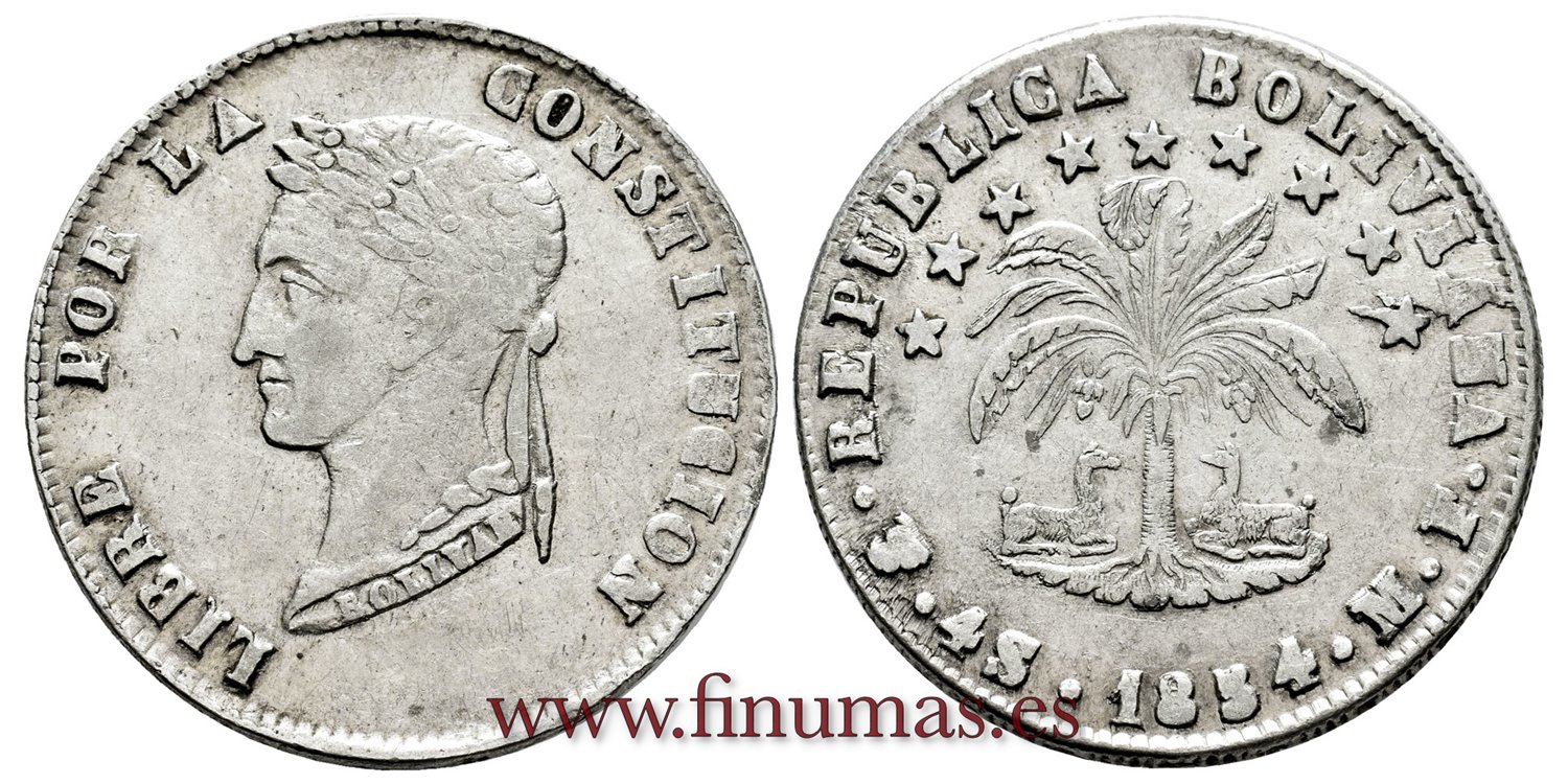 BOLIVIA - K-123-2 - 4 Soles 1854 Pts. MF - MBC+/EBC-