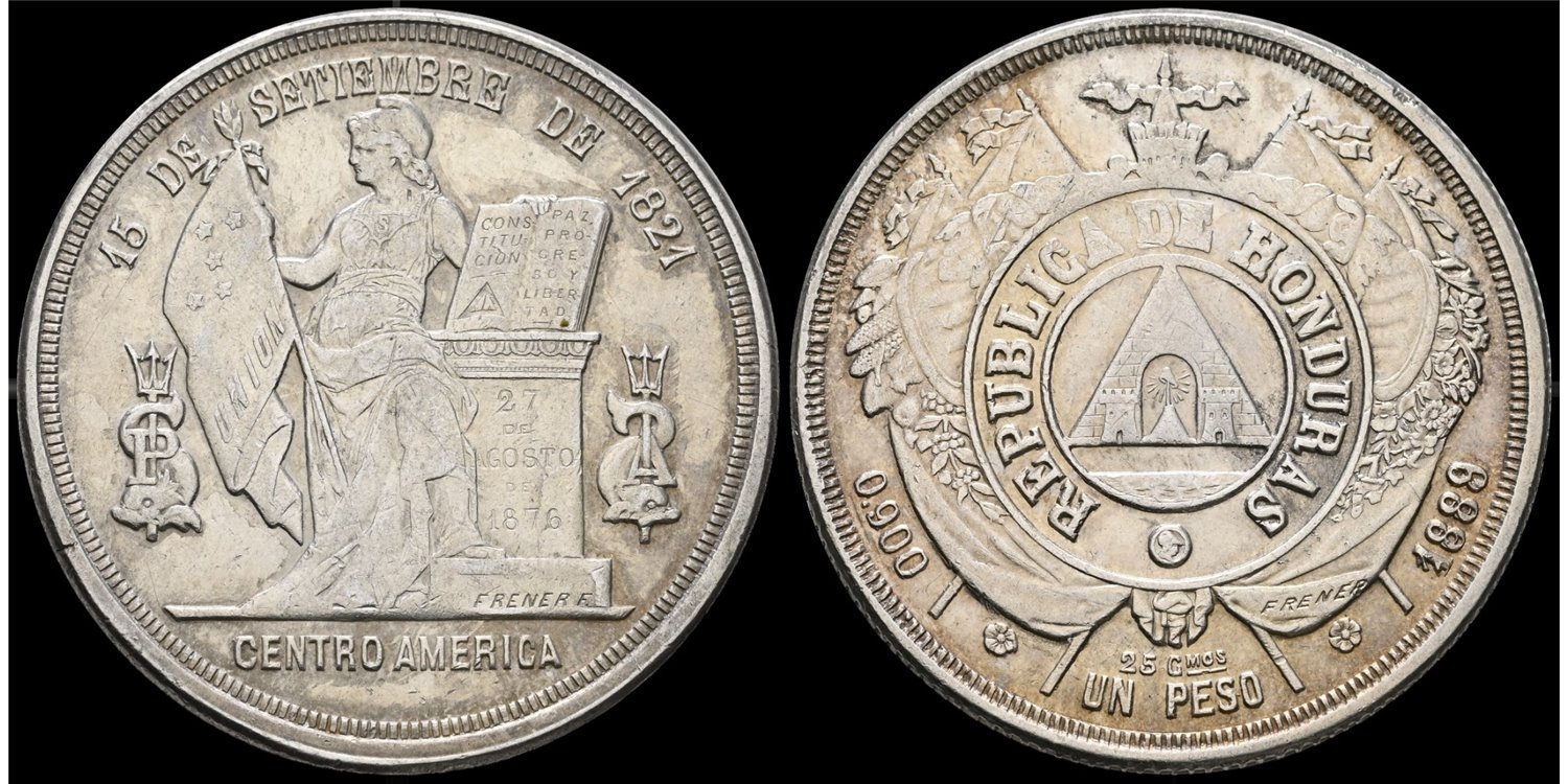 HONDURAS - K-052 1 PESO 1889/88 - MBC PLATA