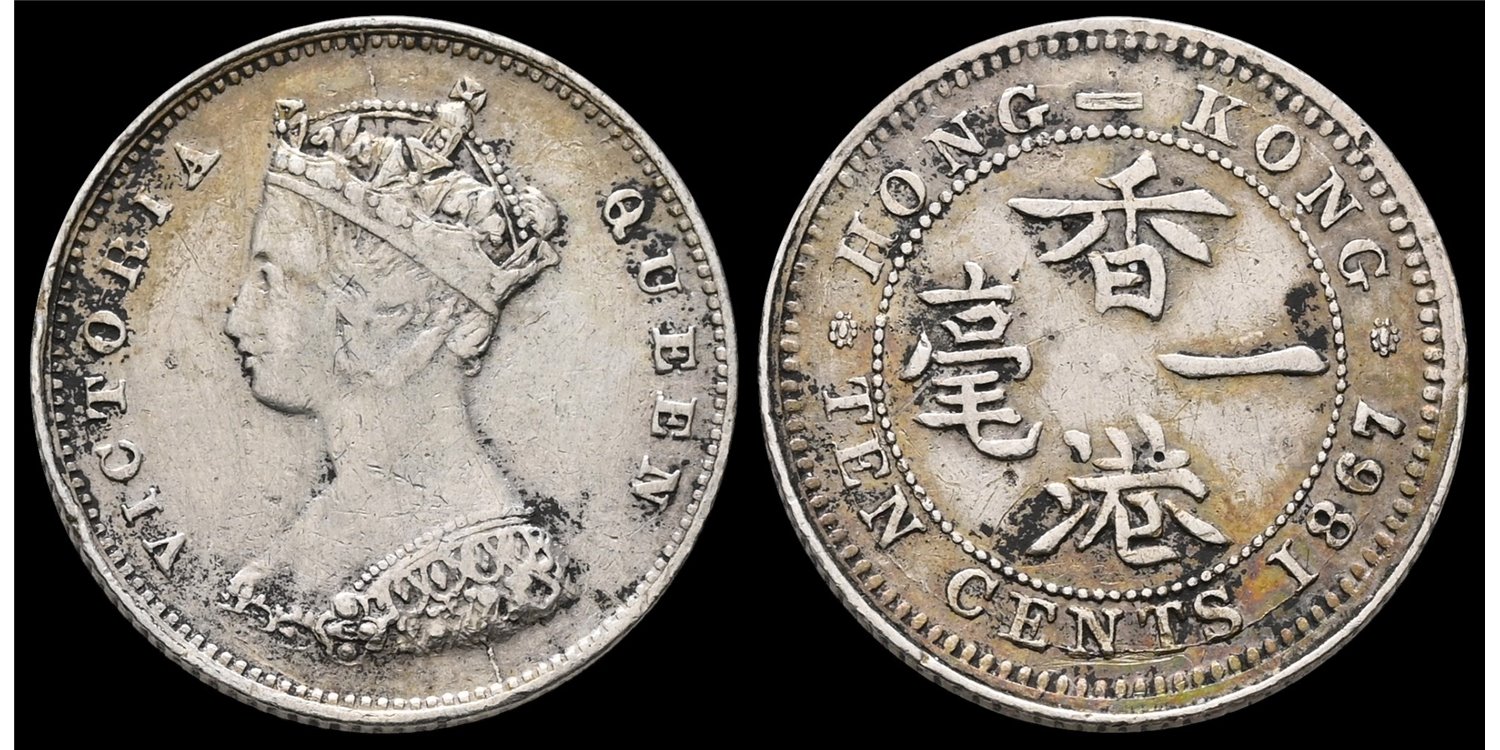 HONG KONG - K-006 10 Centavos 1867 - PLATA