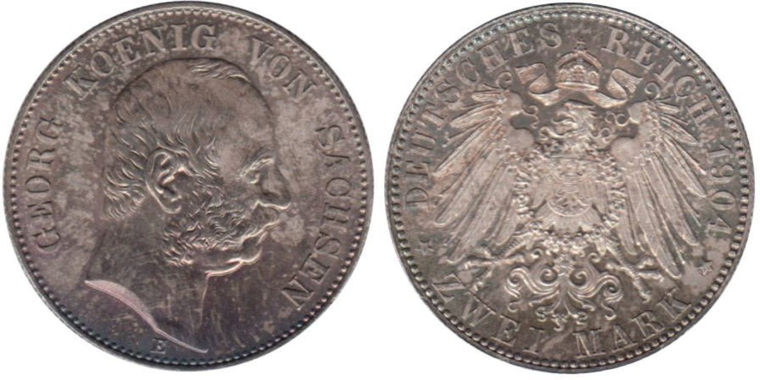 SAXONY K-1257, 2 MARCOS 1904-E, SC plata