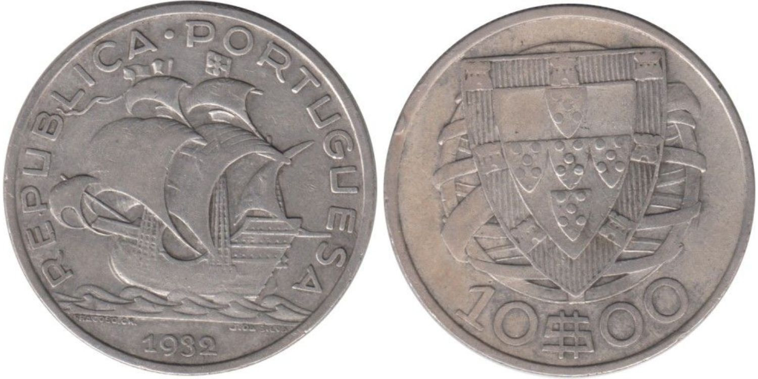 PORTUGAL - K-582 - 10 ESCUDOS 1932 , MBC plata