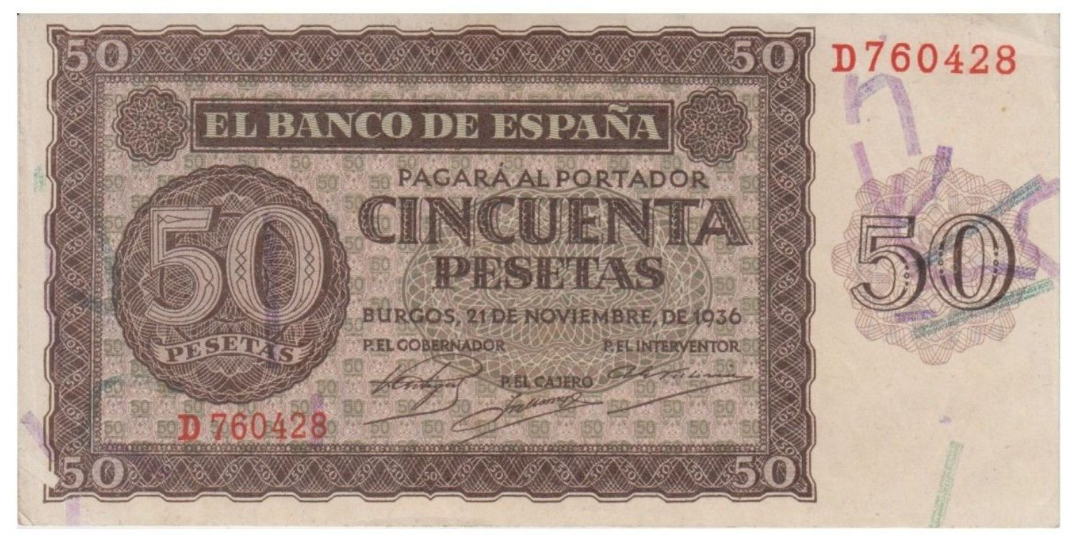 50 Pesetas 21-11-1936 Burgos, Excelentemente bien conservado - serie D