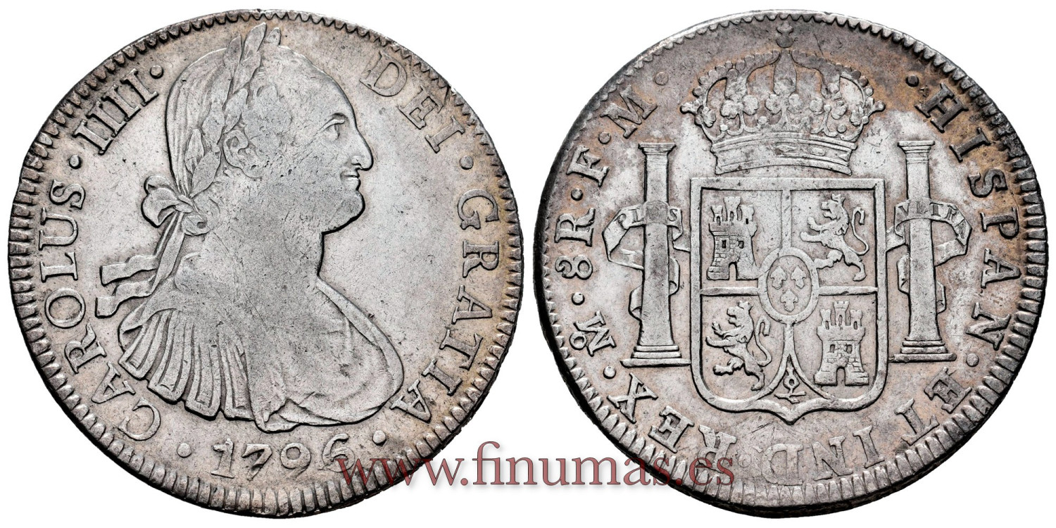 8 reales Plata(Ag) 26,84gm 1796 Mexico F.M. . MBC+. Mínimos restos de Brillo Original