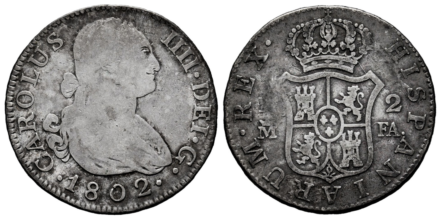 Cy12817.-CARLOS IV - 2 Reales 1802 Madrid F.A.-BC
