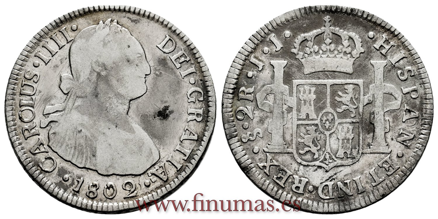 Cy12821.-CARLOS IV - 2 Reales 1802 Santiago J.J.-MBC-.