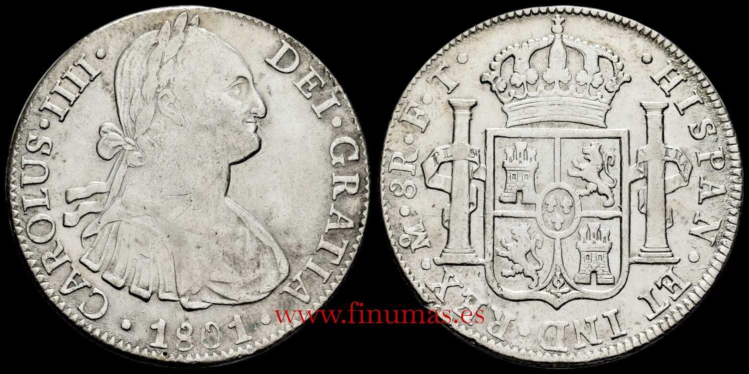 Carlos IV 8 reales 1801 México FT. Plata (Ag.) 26,81 g. MBC+ (Cal-972)