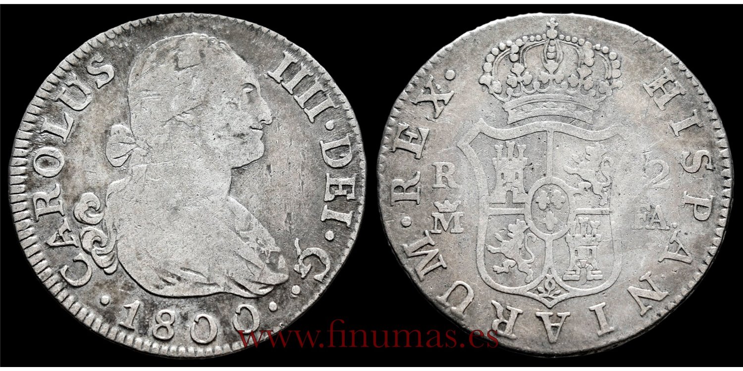Cy12799B.- CARLOS IV 2 REALES 1800 MADRID F.A. - RC. PLATA