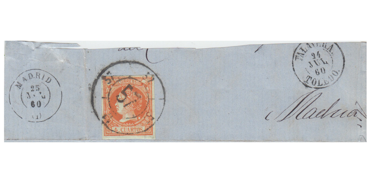 4 Cuartos1860 - Rueda de carreta Nº57 - Talavera sobre fracmento con fechador