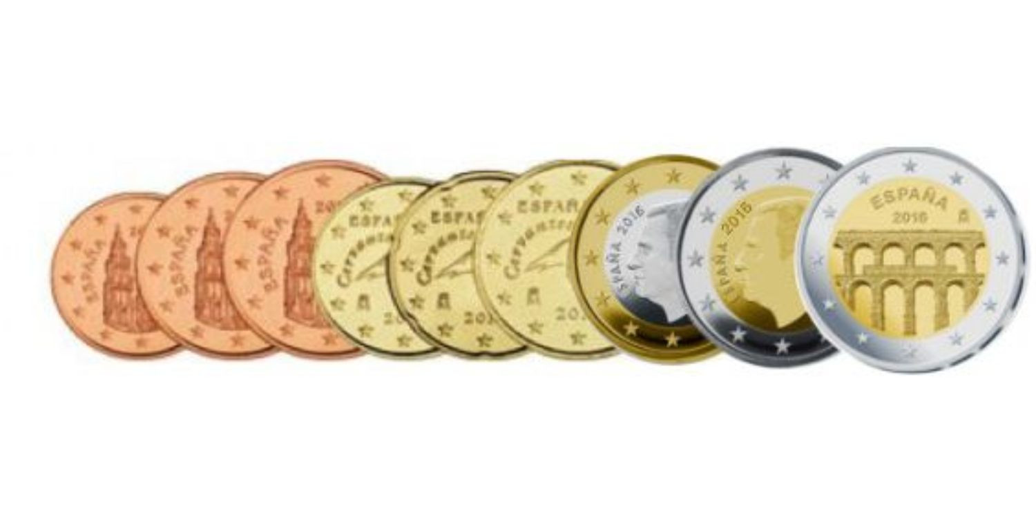 Serie con las 9 monedas de circulacion acuñadas en 2016,. Calidad SIN CIRCULAR. Incluye la monedas de 2 € conm. de "ACUEDUCTO DE SEGOVIA"