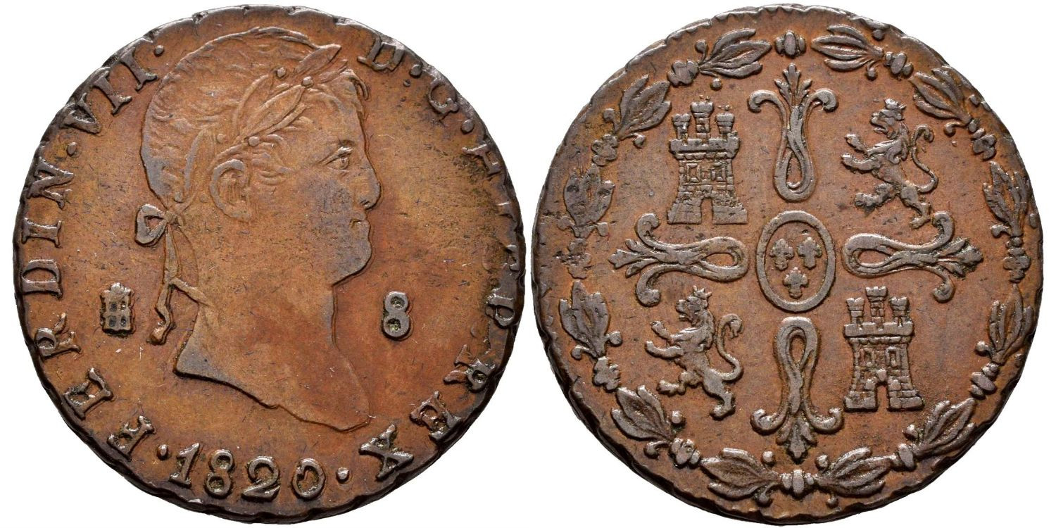 Cy14090.- FERNANDO VII - 8 Maravedis 1820 SEGOVIA. SC