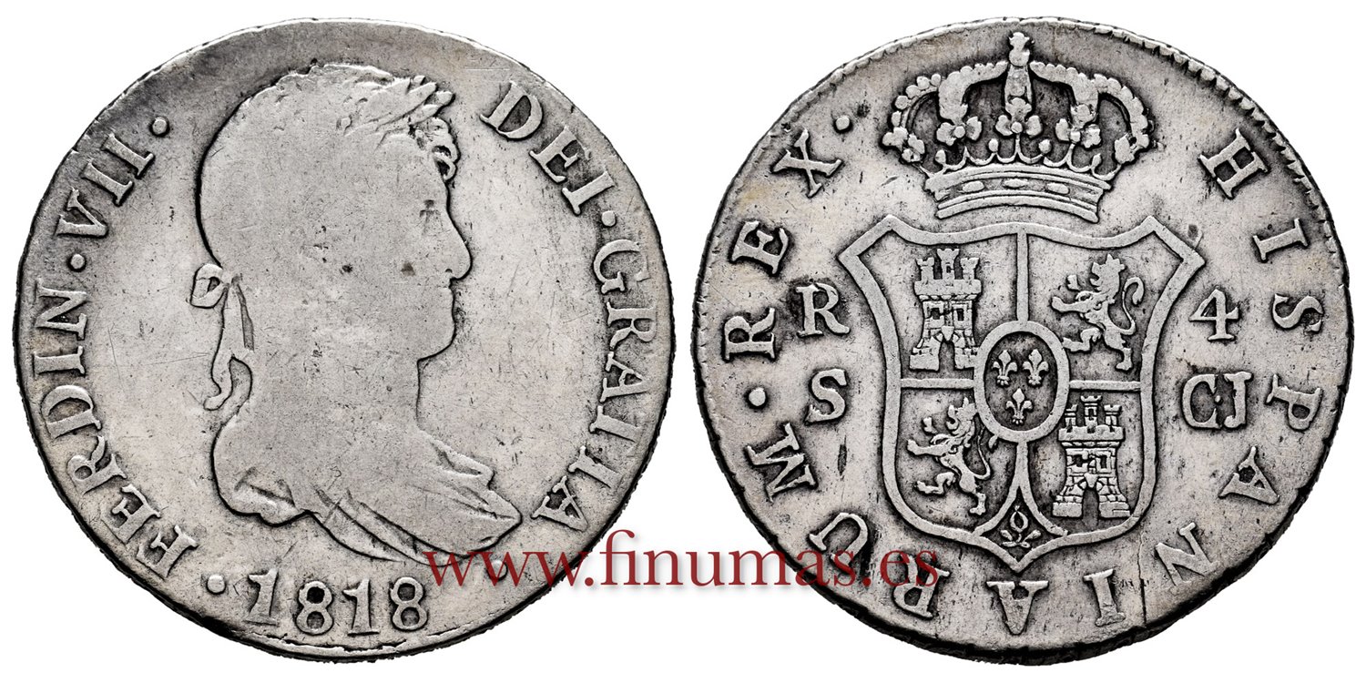 Cy14870.-FERNANDO VII - 4 Reales 1818 Sevilla C.J.- BC+