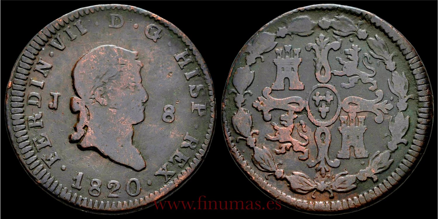 Cy14087C.- FERNANDO VII 8 MARAVEDIS 1820 JUBIA - BC