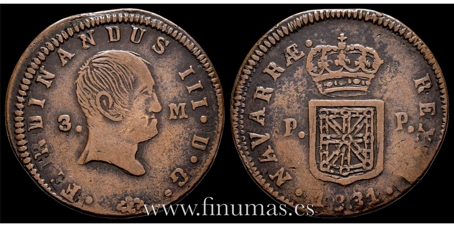 Cy13993.- FERNANDO VII -3 Maravedis 1831 Pamplona - MBC