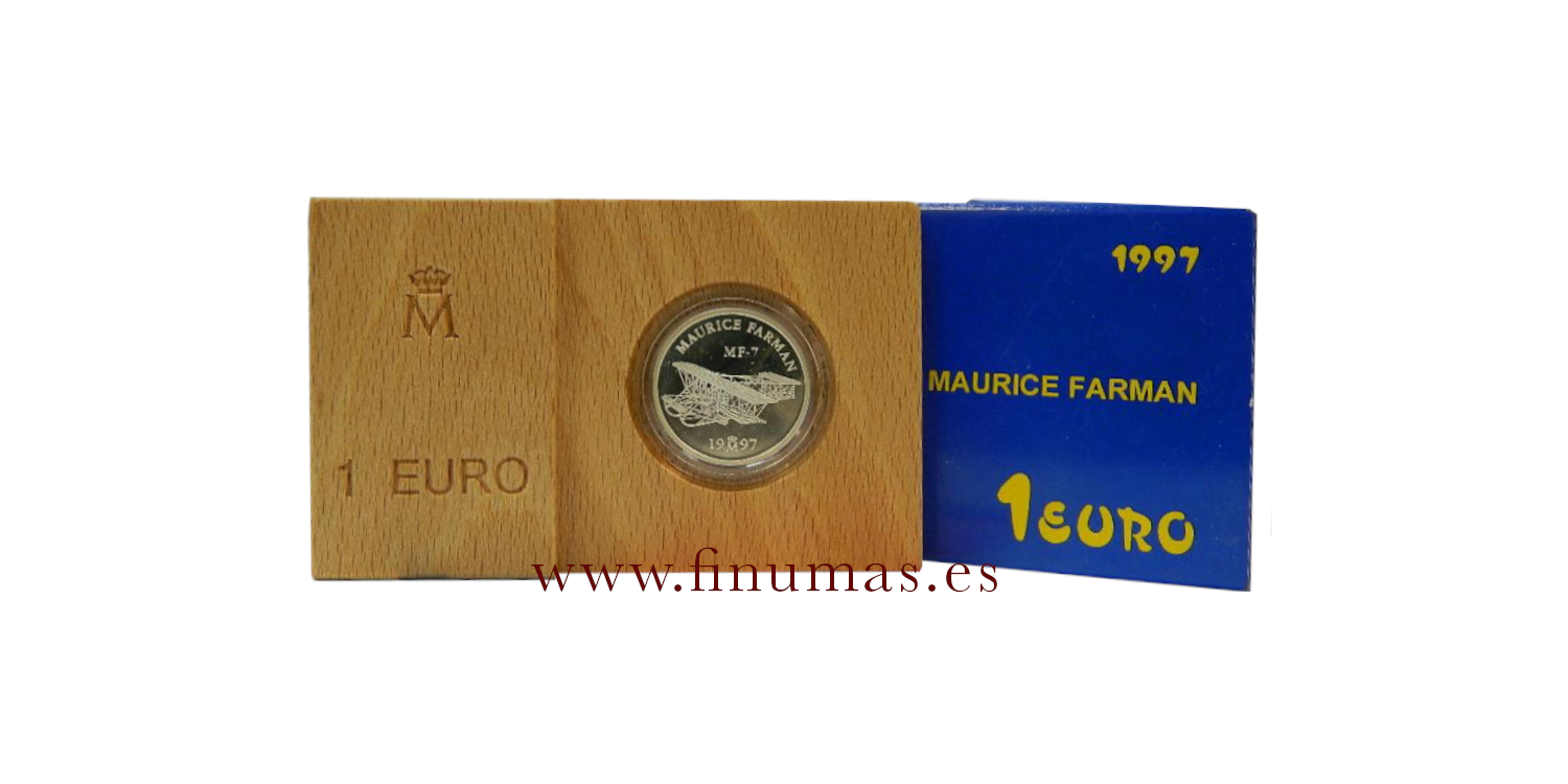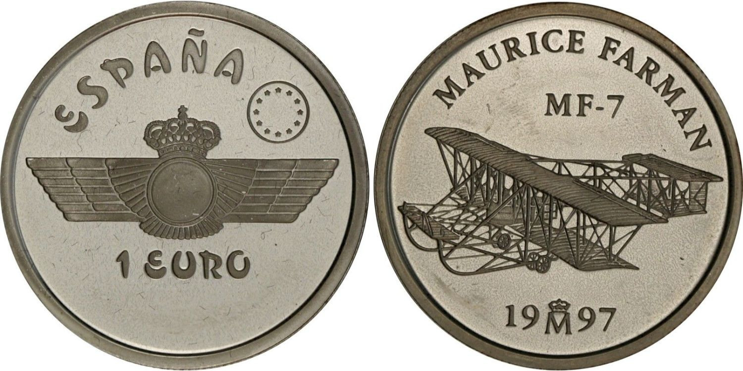 1 Euro 1997, Aviación Española - Maurice Farman Plata proof Peso: 6,72gr. Diametro 24mm. Acabado PROOF.