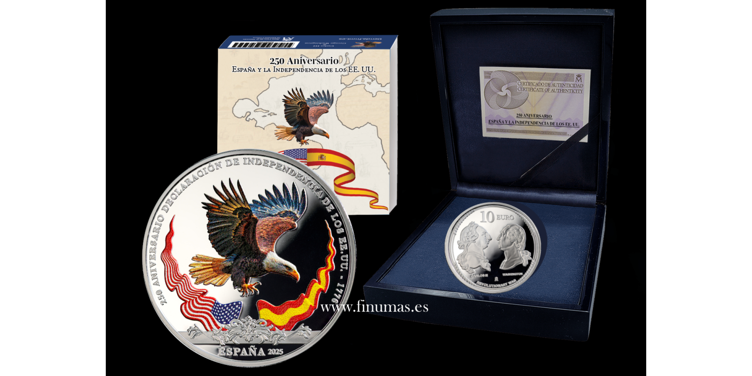 Con motivo de la celebración del 250 aniversario de la Declaración de Independencia de los Estados Unidos de América, se emite una serie de monedas de colección. Bajo esta temática y con su reflejo en los motivos de las monedas, se destaca la contribución española en el éxito de la contienda a favor de las Trece Colonias americanas.
