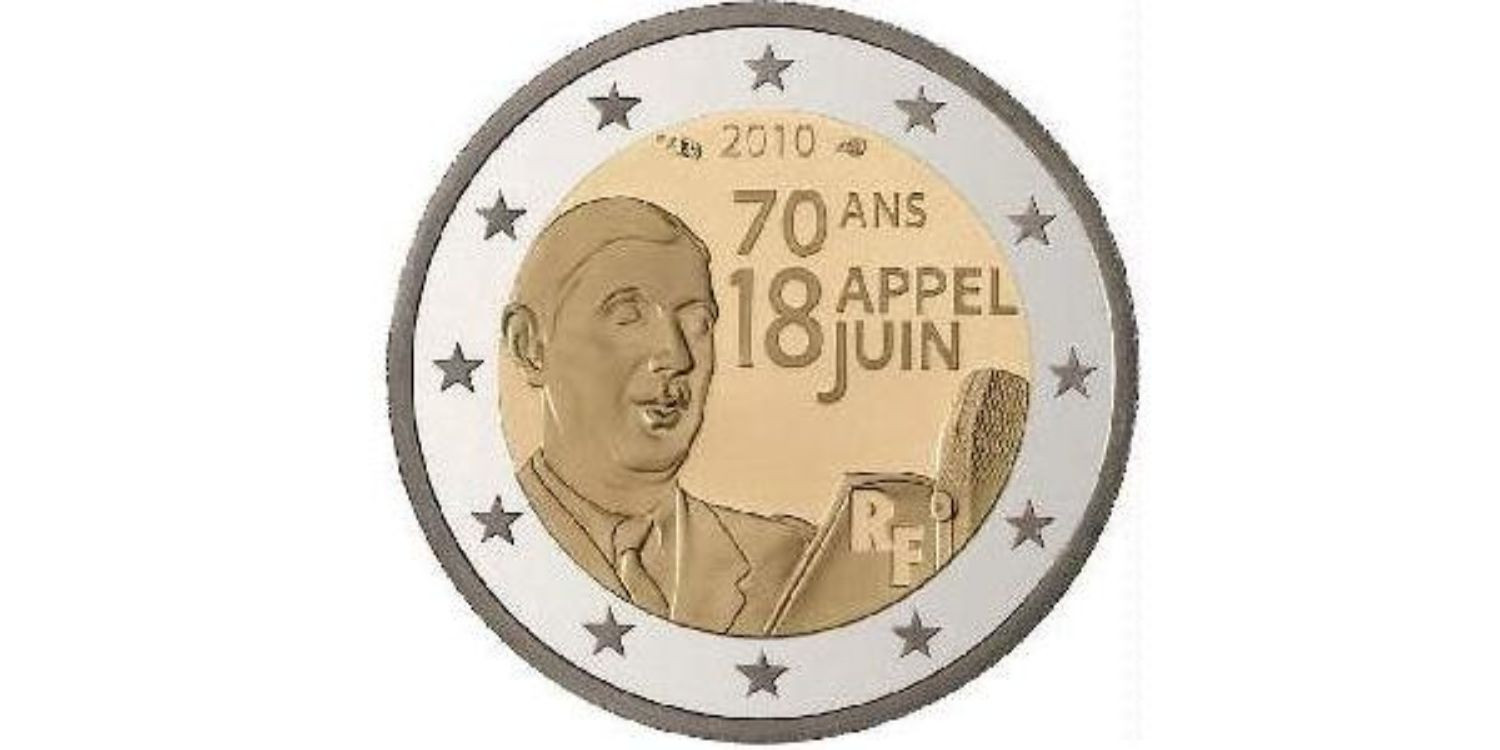 2 COMMEMORATIVE COINS FRANCE 2010 - 70TH OBV. APPEL 18 JUNE