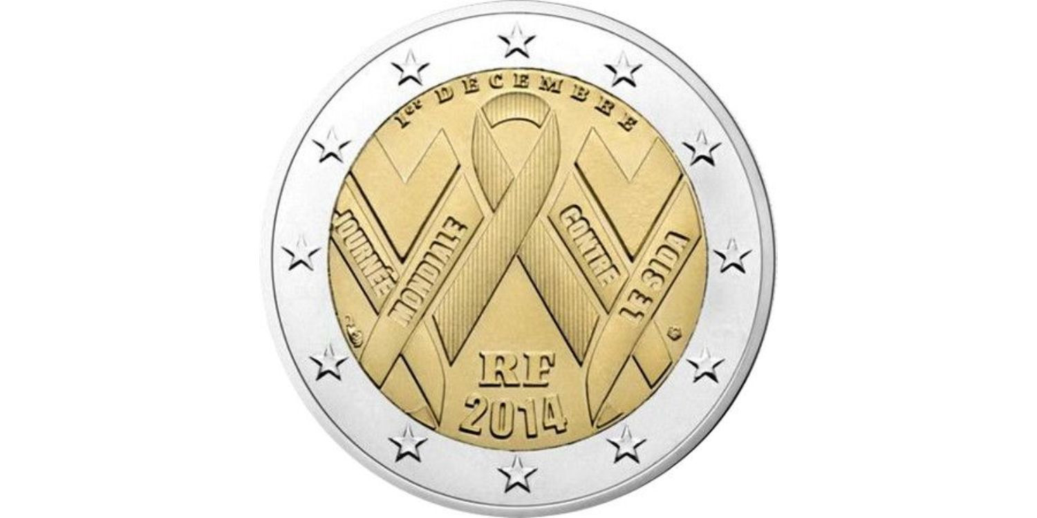 2 FRANCE 2014 "AIDS" COMMEMORATIVE COINS