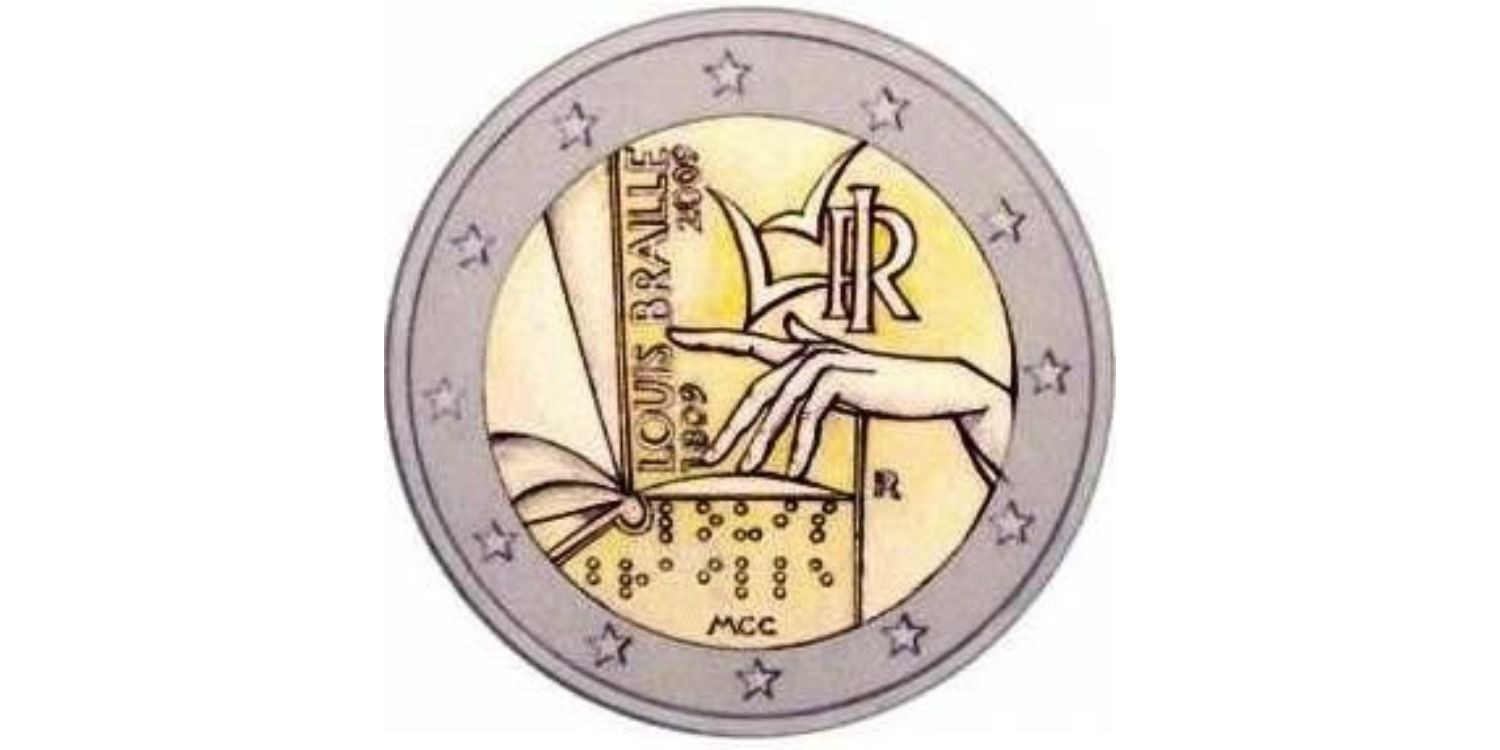 2 EURO COMMEMORATIVE ITALY 2009 "BRAILLE" COINS