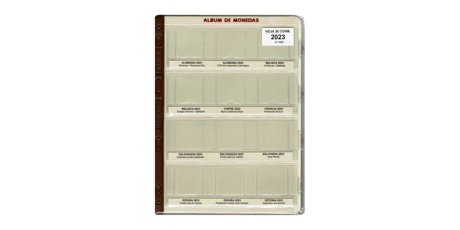 Set of 2 sheets designed to contain all the commemorative 2-euro 2023 coins issued by the different Euro zone countries, including the 5 mints of Germany and those originally presented in Coincard