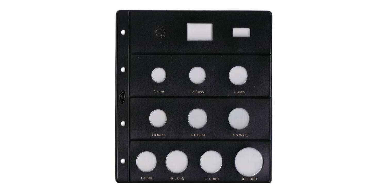 Includes holder for the 2 € commemorative coin and for the 30 € coin. Includes separator cardboard