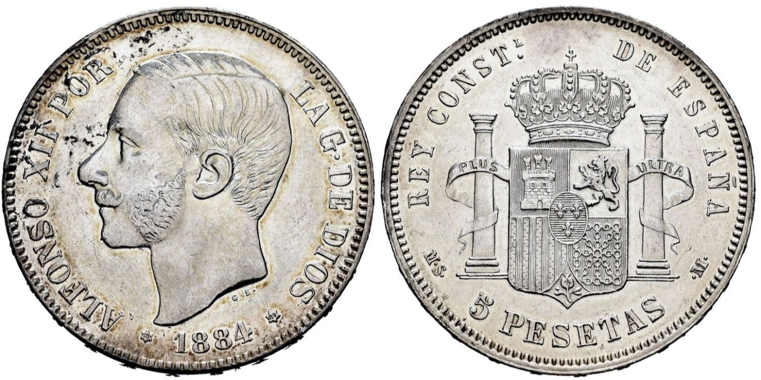 5 Pesetas 1884 (18-84) MSM - Madrid - silver