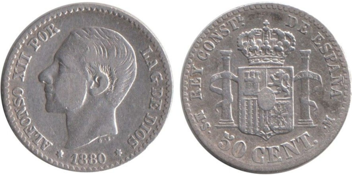 Cy16562C.-ALFONSO XII - 50 Centimos 1880 BC+