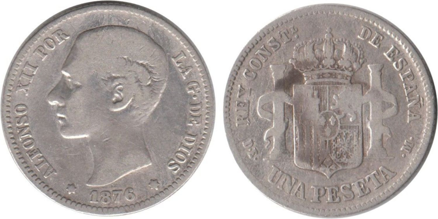 1 Peseta 1876 (---) DEM - Madrid - silver, BC