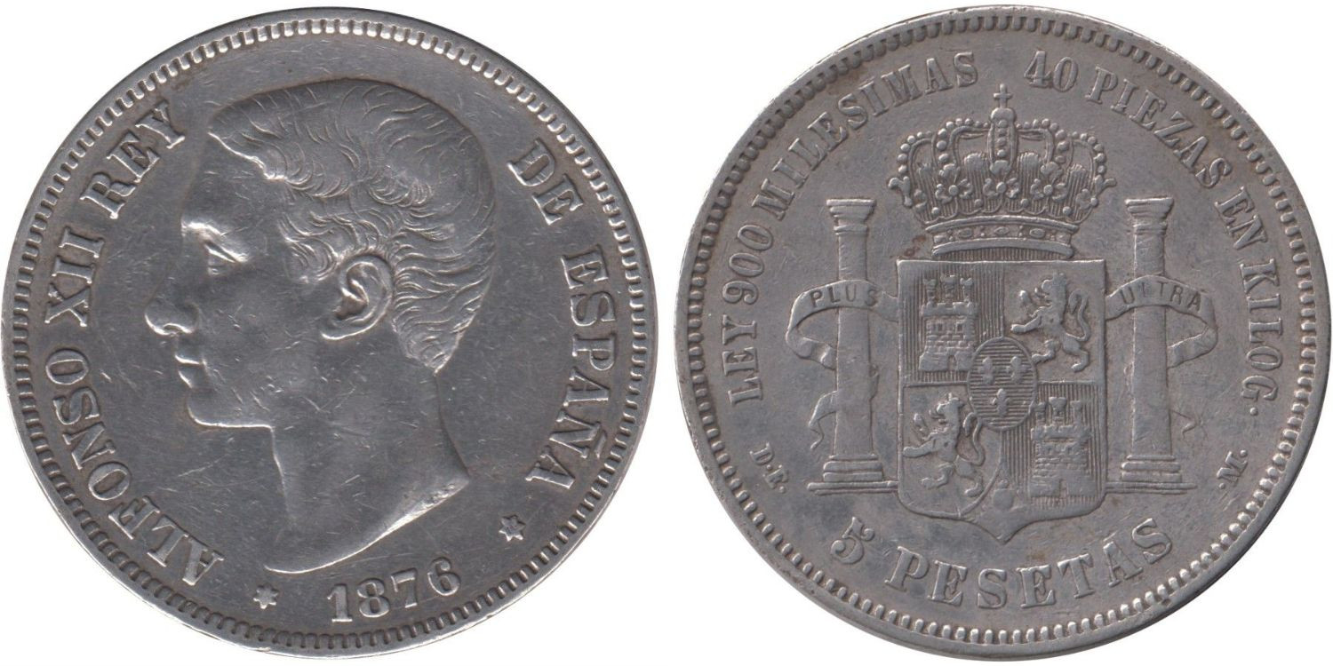 Cy16581E.-ALFONSO XII - 5 Pesetas 1876 MBC
