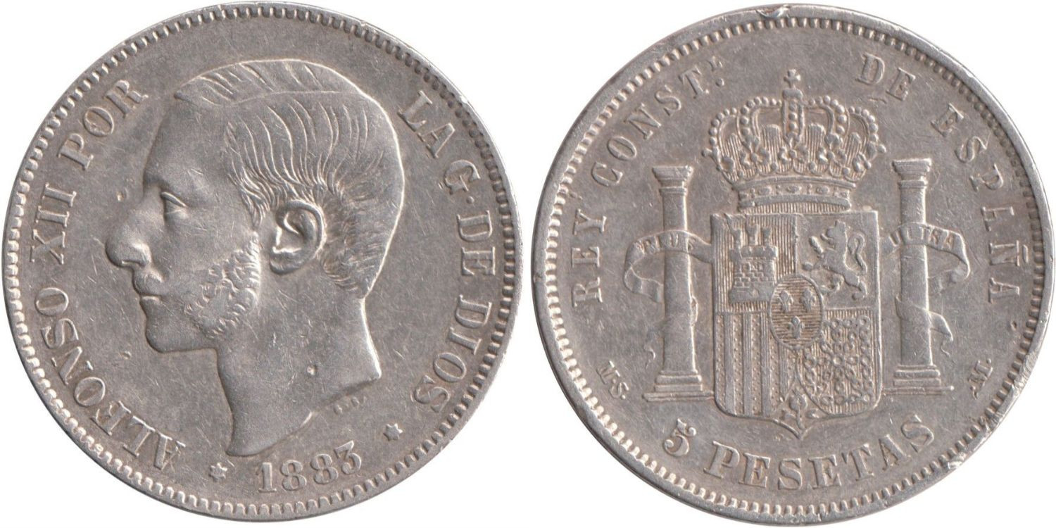 Cy16590E.-ALFONSO XII - 5 Pesetas 1883 MSM, MBC