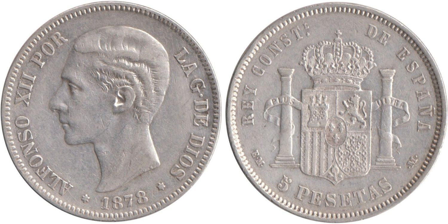 Cy16585F.-ALFONSO XII - 5 Pesetas 1878 (18--) EMM, MBC silver