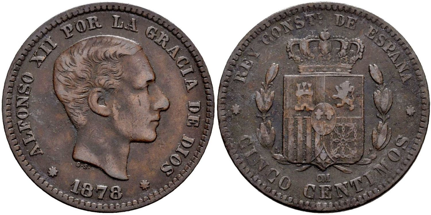 ALFONSO XII 5 Centimos 1878 OM MBC+ Cy16556f.- ALFONSO XII 5 Centimos 1878 OM MBC+