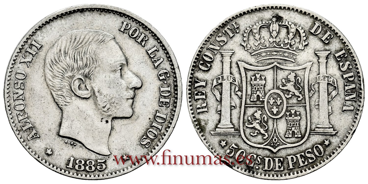 ALFONSO XII . 50 Centavos de Peso. (Ar. 12,91g/30mm). 1885. Manila. (Cal.120). MBC.