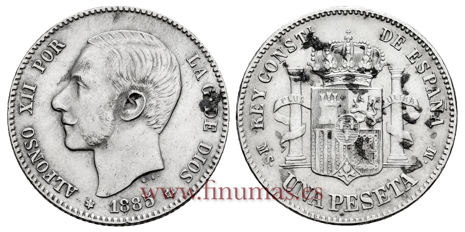 Alfonso XII 1 peseta. 1885*18-86. Madrid. MSM. (Cal-62). Ag. 4,96 g. Manchitas. MBC+