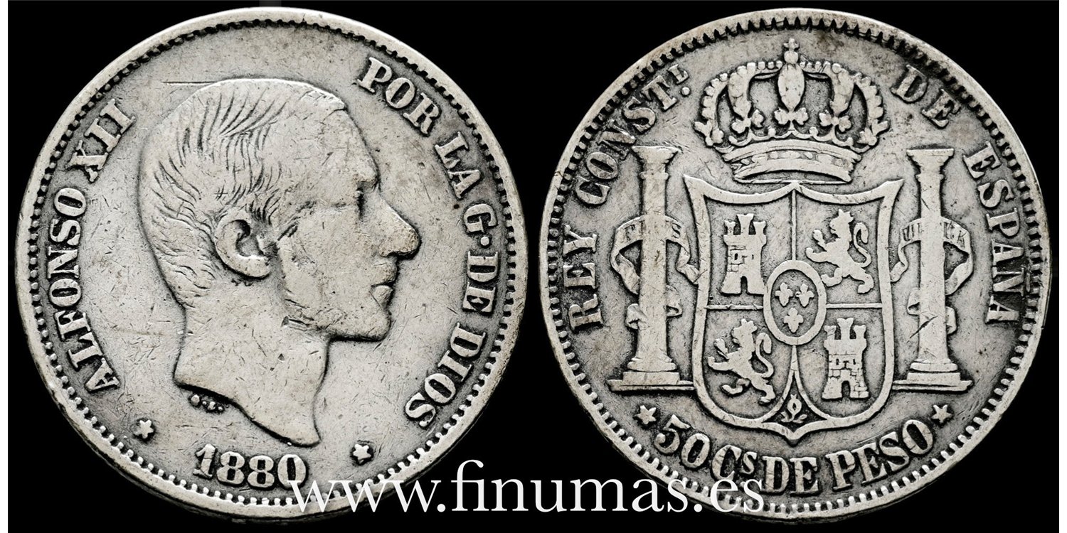 Alfonso XI. 40 Centavos de Peso 1880. Manila. Plata (Ag) 12,85gm. Muy Rara.