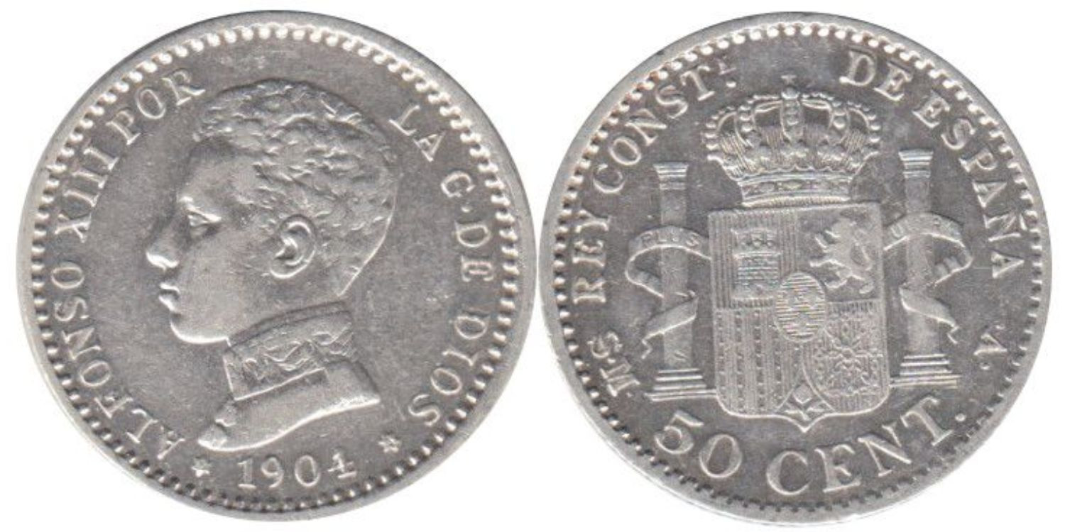 50 Centimes 1904 (0-4) SMV,- Madrid - silver, EBC+
