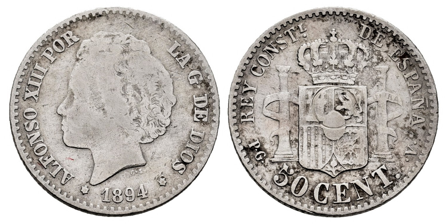 Cy16663e.- ALFONSO XIII 50 Centimos 1894 (--) P.G.V. MBC