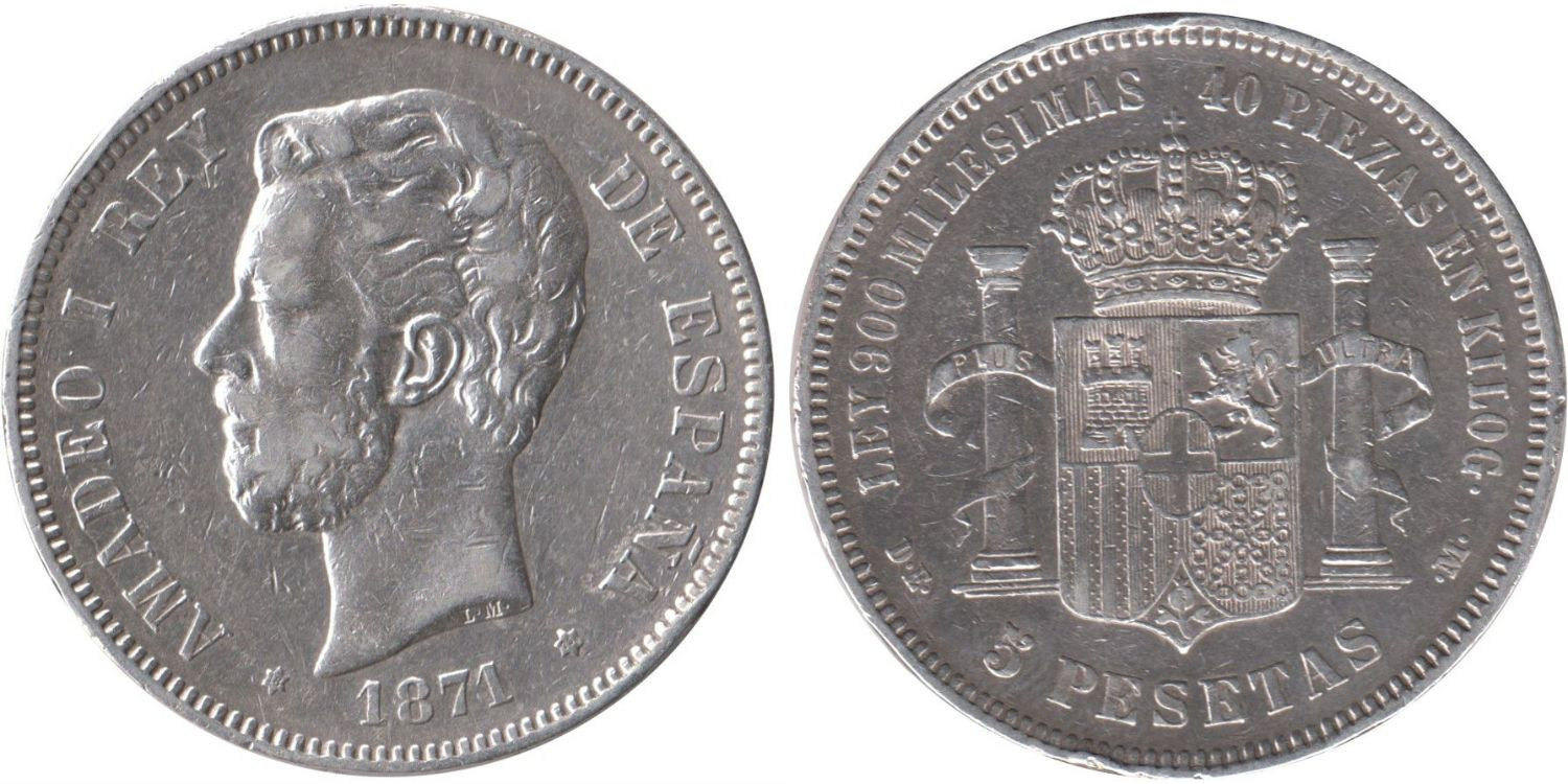Cy16534E.-AMADEO I - 5 Pesetas 1871/75 MBC