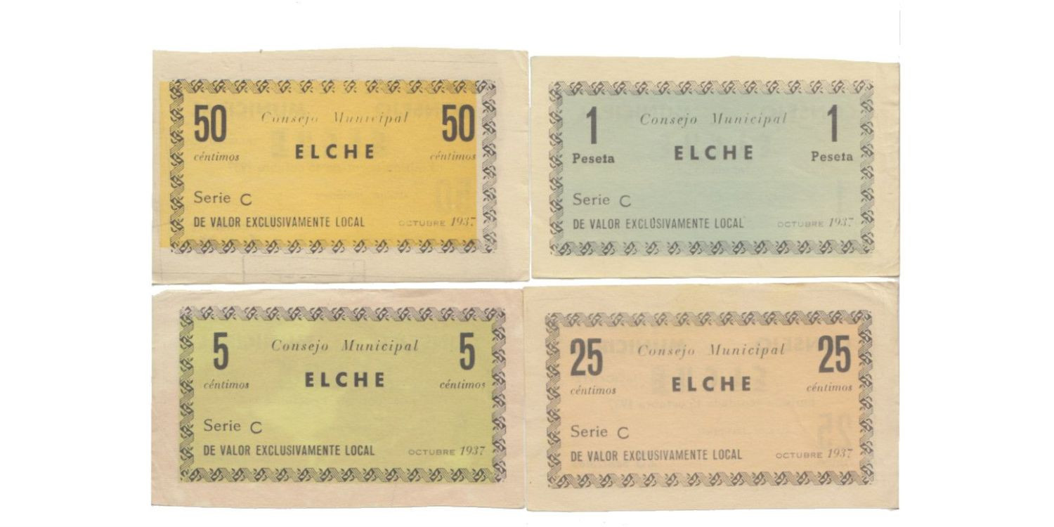 LOCALS - ELCHE - 5, 25, AND 50 Ctm. AND 1 Pts - 15-10-1937 - EBC