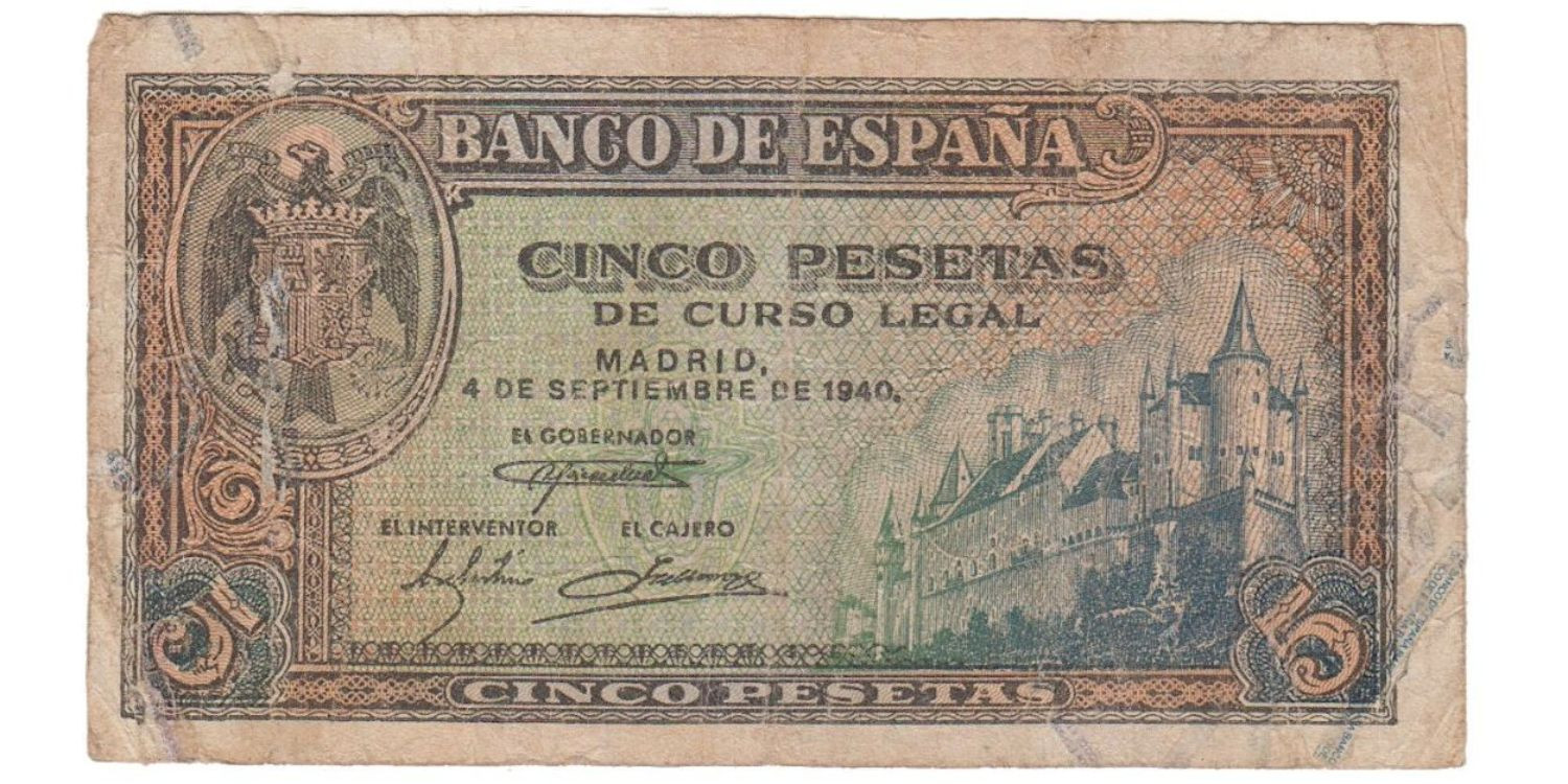 F434B - 5 Pesetas 04-09-1940. RC Series A/L